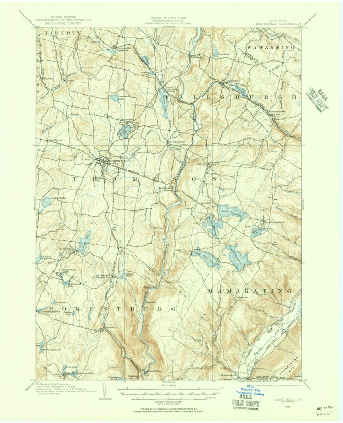 Monticello, NY (1909, 62500 Scale) Map by United States Geological